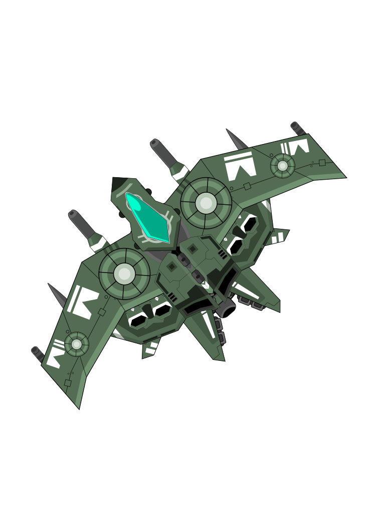 This features a green spaceship with two engines, one on the left side and another on the right. It is equipped with rockets, which are likely used for propulsion or defense purposes. The spaceship appears to be in a stationary position, possibly docked at a spaceport or waiting for its next mission. The design of the spaceship suggests that it may have been inspired by futuristic aircraft or other advanced technology. Overall, the image presents an intriguing and imaginative portrayal of a green spaceship with rockets on board.