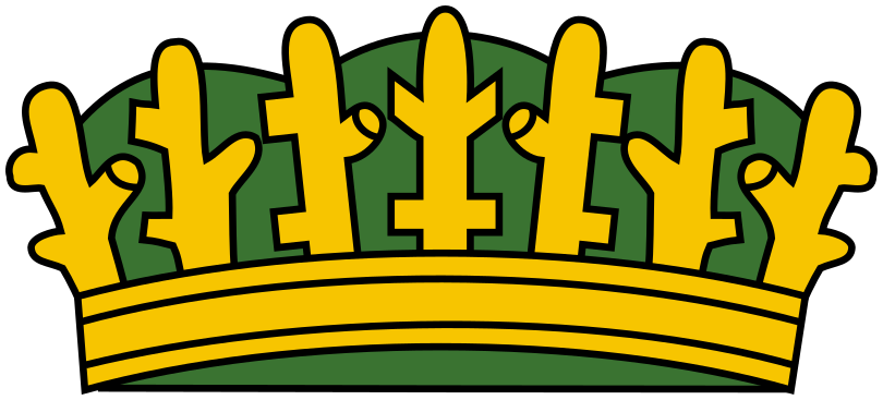 This features a green and yellow crown with five points, resembling a royal or regal emblem. The crown is adorned with gold accents, giving it an elegant appearance. The colors of the crown are predominantly green, with some yellow elements that add to its visual appeal. This design could be used for various purposes such as decoration, branding, or even a symbol of authority and power.