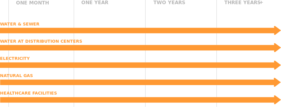 This displays a table with several columns of information. Each column is labeled with different topics, such as Water & Service, Electricity, Natural Gas, and Telecommunications. There are also arrows pointing upwards in each column, indicating that the information goes upward. This could be an infographic or a chart showing data related to these topics. The table appears to have been created for easy reference and understanding of the various aspects of these services.