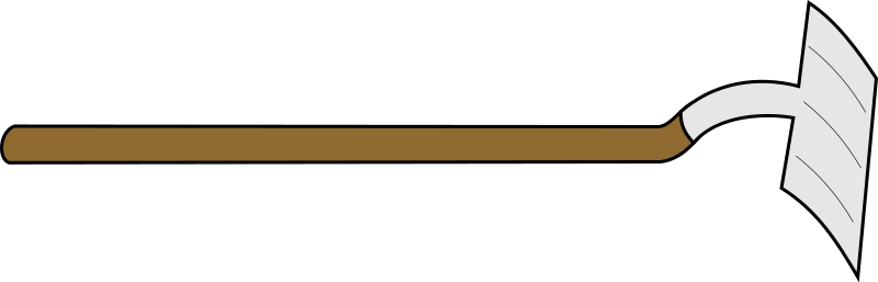 This features a large wooden shovel, which is the main focus of the scene. It appears to be an illustration or drawing rather than a photograph. The shovel has a long handle and is positioned horizontally across the entire width of the image. The background consists of a plain white surface that provides a clean backdrop for the shovel, allowing it to stand out prominently in the scene.