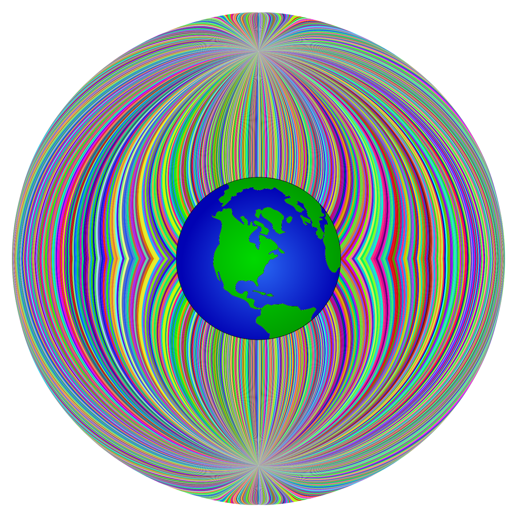 This features a colorful, abstract representation of the Earth. It is a circular shape with various colors and patterns that make it visually appealing. The main focus of the image is the depiction of our planet, which appears to be at the center of this artistic creation. The vibrant colors and intricate design elements create an interesting visual experience for viewers, making it a unique and captivating piece of art.