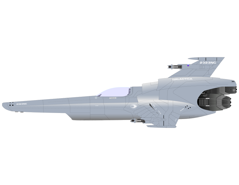 This features a futuristic fighter jet, likely inspired by the Viper Mark VII from Battlestar Galactica. It is a large and sleek silver spacecraft with a prominent nose cone at the front. The jet appears to be in motion, as if it's flying through the air or taking off into space. The design of this fighter jet suggests that it could be used for both combat and exploration purposes, making it an impressive piece of technology.