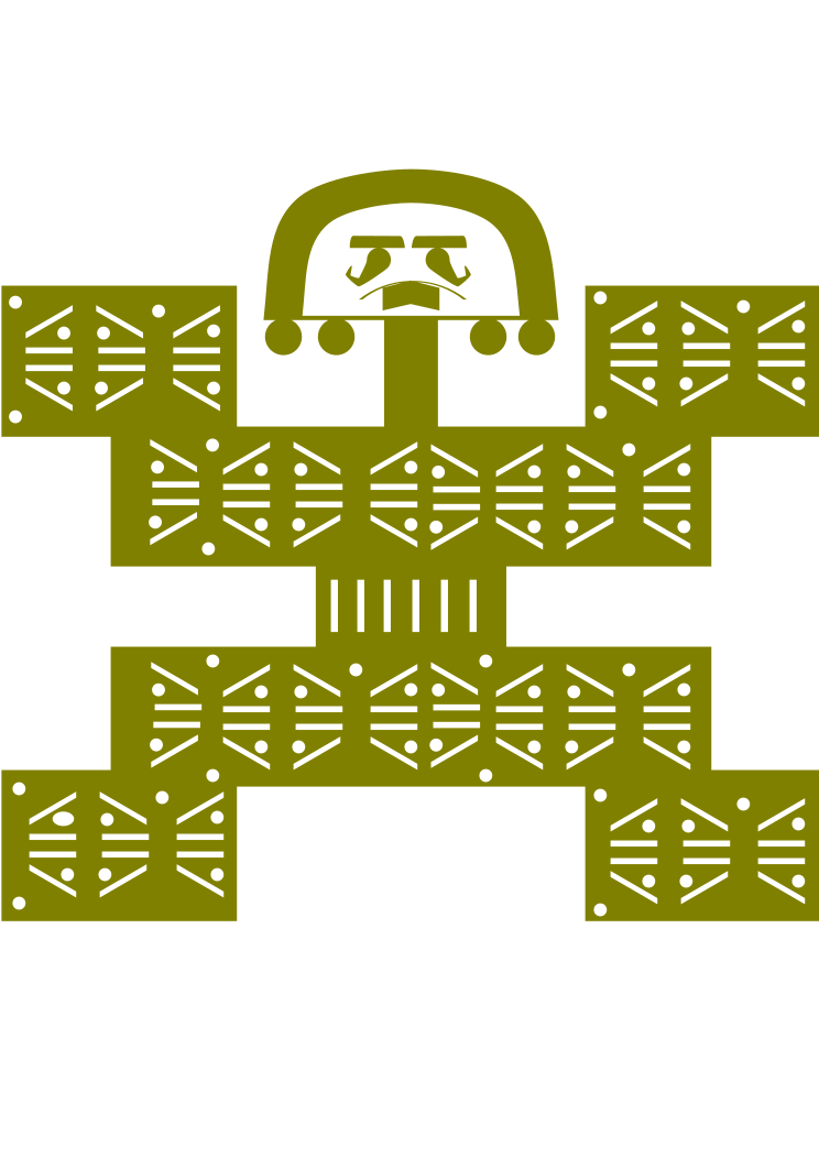 This features a unique and intricate design, which appears to be an artistic representation of a head. This head is placed on top of a stick or pole, giving it the appearance of being held up by the stick. The overall design has a yellow color with white lines and circles, adding depth and detail to the piece. The combination of these elements creates a visually striking image that captures attention and showcases the artist's skill in crafting such an intricate pattern.