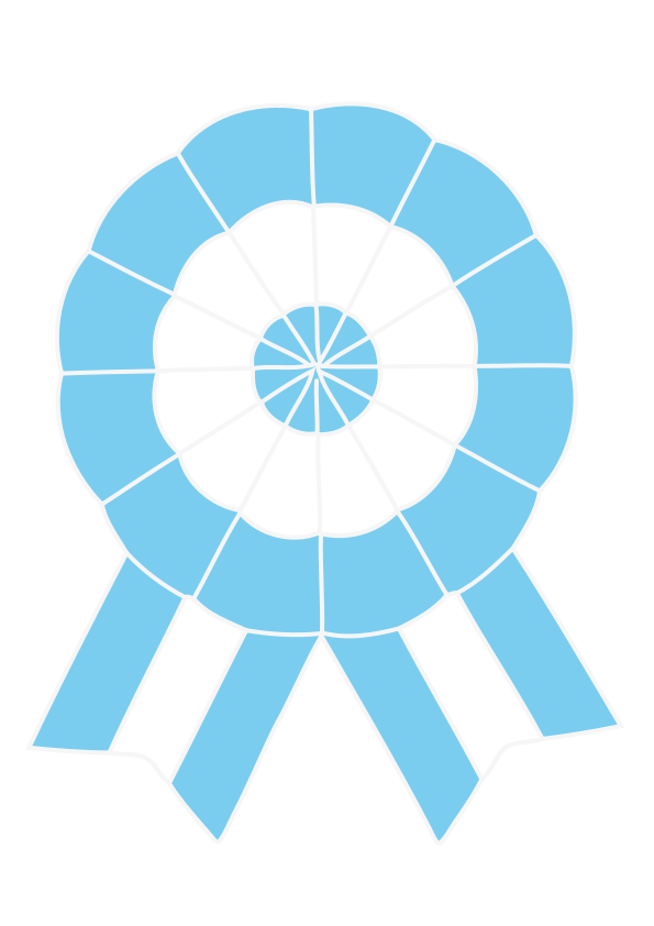 This features a blue and white ribbon award with four distinctive ribbons on it. The ribbons are arranged in a circular pattern, giving the award an appealing and professional appearance. The overall design of the award is visually striking, making it an attractive symbol for recognition or achievement.