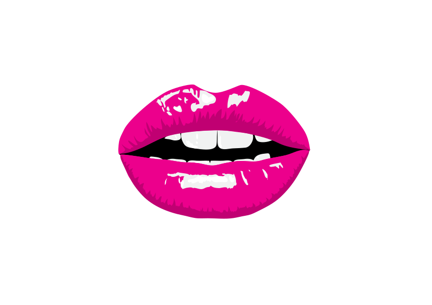 This features a close-up of a pink lipstick-covered mouth with teeth showing. The lips are glossy, giving them an attractive and shiny appearance. The mouth is open, revealing the pink color of the lipstick on the lips. This artistic representation of a mouth can be used in various contexts such as advertising or design projects to convey a sense of beauty and sophistication.