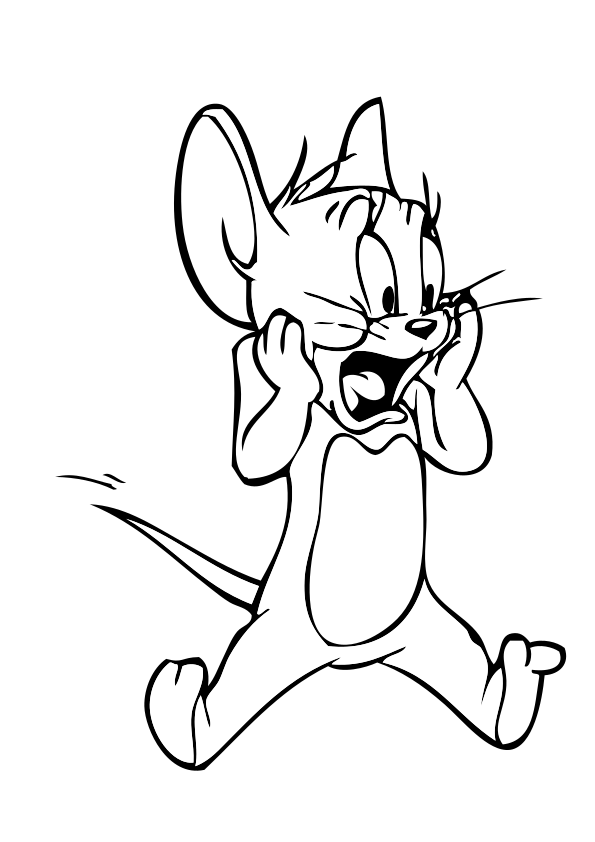 This features a cartoon mouse with its mouth open, appearing to be surprised or making an exaggerated face. It is the main focus of the scene and appears to be in motion, possibly running or jumping. The drawing style gives it a comical and playful appearance.