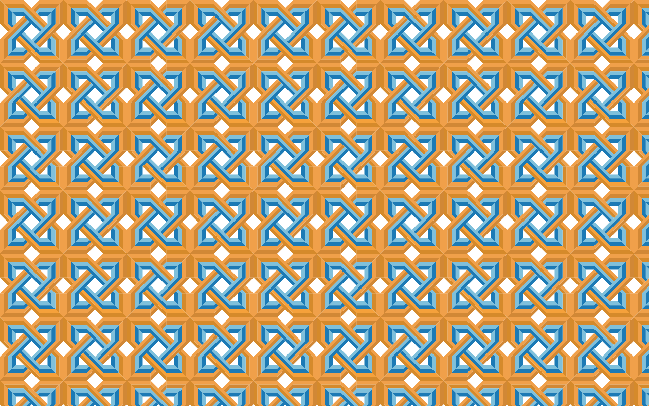 This features a large, intricate pattern of interlocking diamond shapes in various shades of blue and yellow. These diamonds are arranged in a complex grid-like formation that covers the entire frame of the picture. The design is reminiscent of a mosaic or tiled wallpaper, giving it an artistic and visually appealing appearance. The combination of these vibrant colors creates a striking contrast against each other, making the pattern stand out as a unique and eye-catching decorative element.