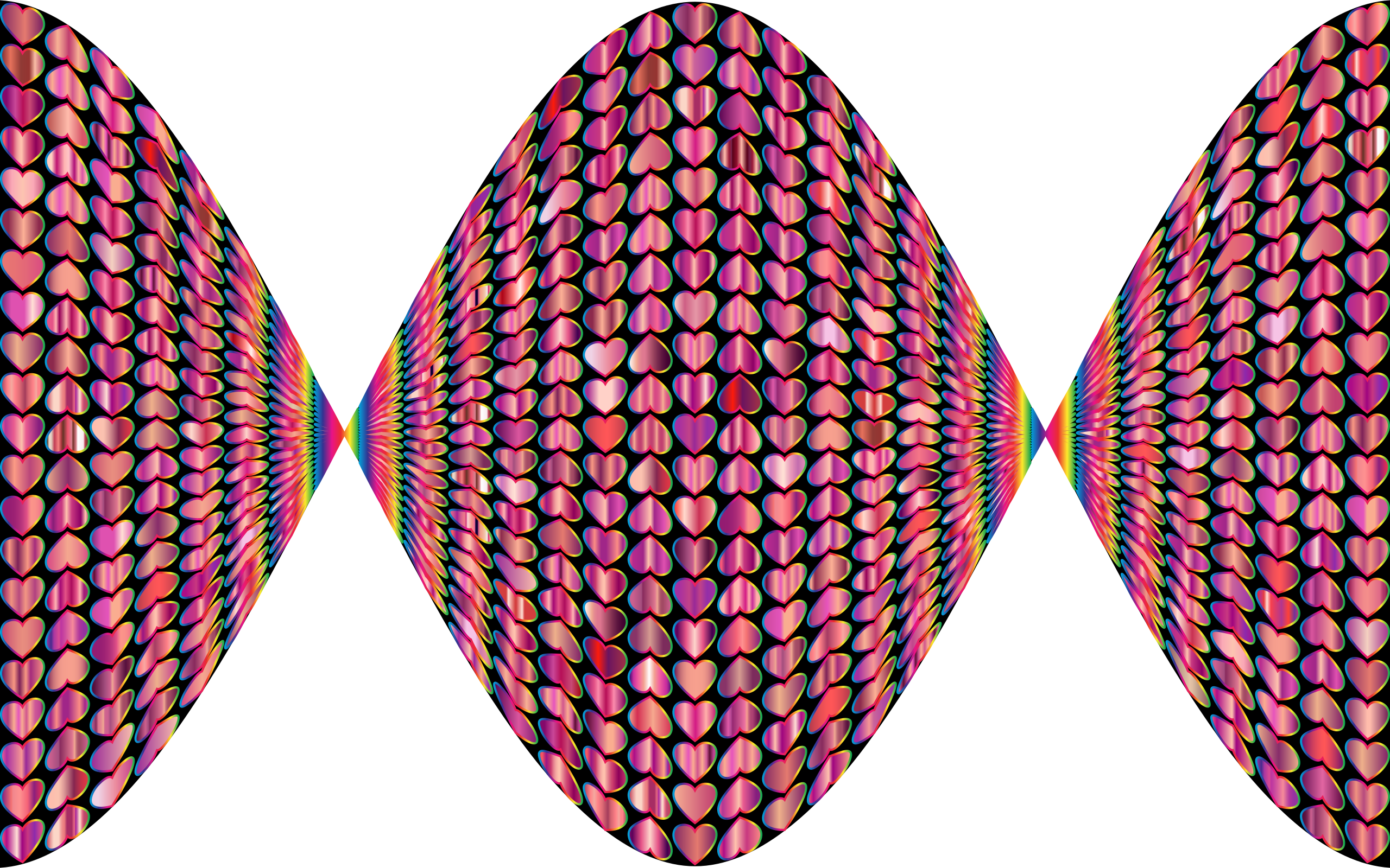 This features a unique and visually appealing design of three connected hearts, each with a different color. These hearts are arranged in a way that creates an interesting visual effect, resembling a prismatic pattern. The hearts are glossy, adding to the overall appeal of the design. This artistic piece could be used for various purposes such as decoration or even as a creative logo.