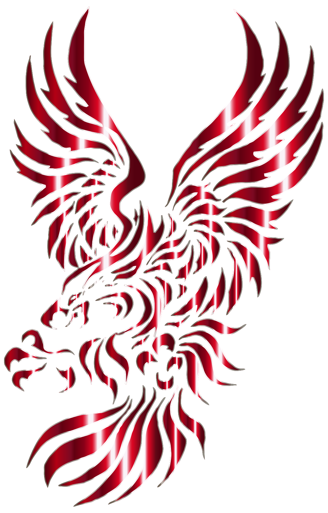 This features a red prismatic eagle, which is an eye-catching and vibrant design. The bird is depicted in mid-flight, showcasing its wingspan and the intricate details of its feathers. The color scheme of the eagle is predominantly red, with some shades of orange and yellow adding to its visual appeal. This striking image captures the essence of a majestic bird soaring through the sky, making it an impressive piece of art or design.