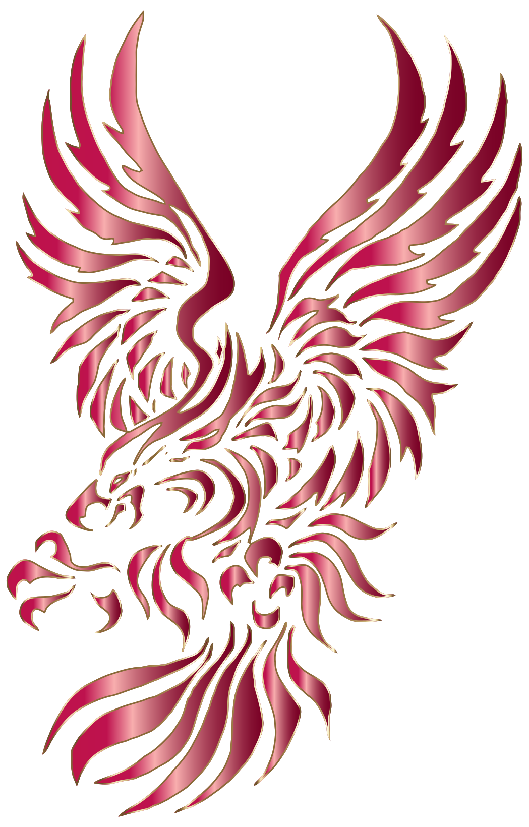 This features a large, colorful eagle with its wings spread wide. The bird is adorned in red and gold colors, giving it an impressive appearance. Its beak is open, adding to the dynamic nature of the design. The eagle's wings are intricately detailed, showcasing the artist's skill in creating a visually striking image. This artwork could be used as a decorative piece or even as a symbol for various causes or organizations.