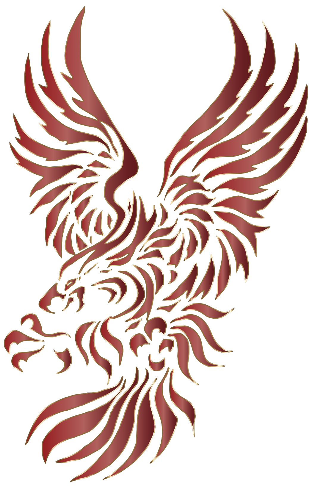 This features a red and gold eagle with its wings spread wide. The bird's head is turned to the left, giving it an angry appearance. The eagle has intricate details in its design, including a beak that appears to be open. This artistic representation of the eagle is likely used as a symbol or decorative element in various contexts.