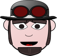 This features a cartoon character with a goofy smile, wearing a hat and goggles. He has a mustache and appears to be enjoying himself. The character is wearing a black shirt and a tie, adding a touch of formality to his outfit. His facial expression suggests that he might be making a joke or simply having a good time. Overall, the image portrays a lighthearted and fun atmosphere with the cartoon man as its central figure.