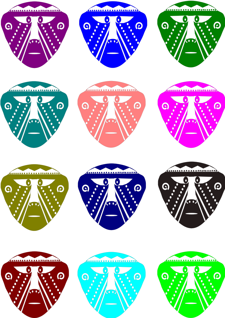 This features a collection of monkey faces with various colors and expressions. There are twelve different colored monkeys in total, each with unique facial features. Some of the monkeys have eyes closed while others have them open, adding to their diverse appearances. The monkeys are arranged in three rows, creating an interesting pattern across the image. This artistic display showcases a creative and playful representation of these fascinating animals.