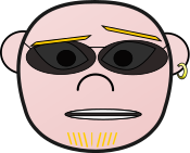 This features a cartoon-like head with sunglasses and an earring. The head is wearing yellow sunglasses, giving it a unique appearance. It has a black outline around the face, which adds to its distinctive look. The man's hair appears to be shaved, further emphasizing his facial features. The cartoon head seems to be smiling or making a funny face, adding humor and character to the image.