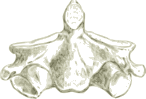 This is a drawing of an object that resembles the human spine. It features several vertebrae, including a large one in the center and smaller ones surrounding it. The drawing appears to be a close-up view of this spinal structure, showcasing its intricate details. The overall composition of the image gives off a sense of anatomical study or artistic representation of human biology.