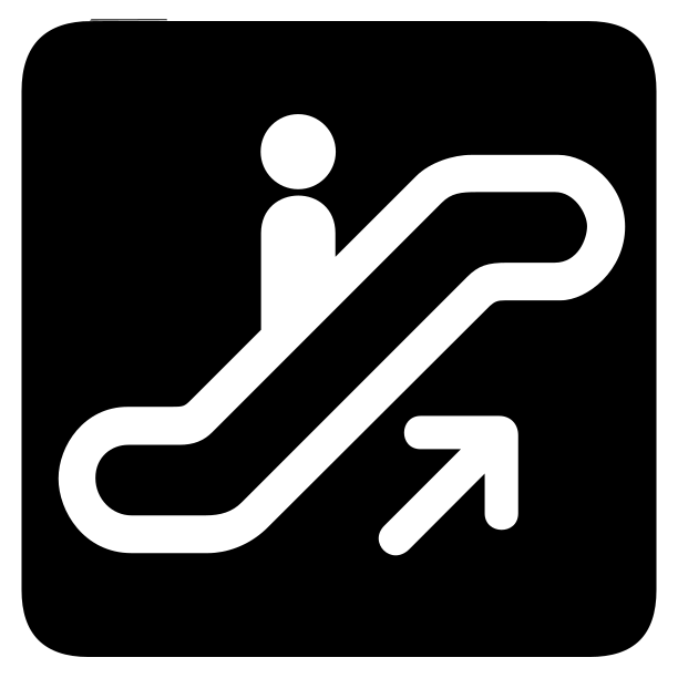 Tags: aiga, aiga bg, arrow, black and white, externalsource, icon, map symbol, sign, silhouette, symbol, stair, elevator, handicap accessible, up escalator