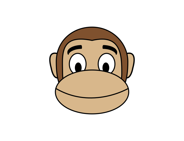 This features a cartoon monkey with a big smile on its face. It is the only part of the monkey that is visible, as it covers most of the frame. The monkey's hair appears to be brown in color and gives it a friendly appearance. This illustration could be used for various purposes such as advertising or entertainment, showcasing the playful nature of the character.