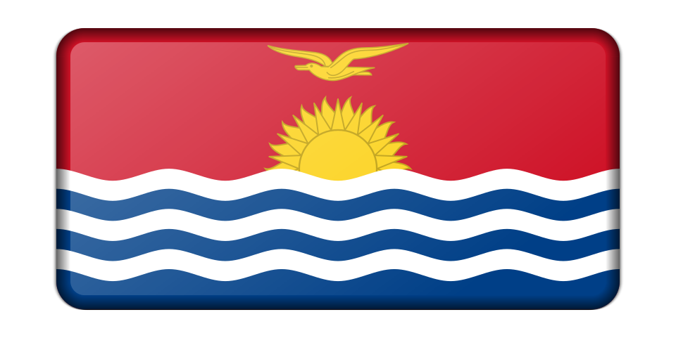 This features a flag of Kiribati, which is a small island nation in the Pacific Ocean. The flag consists of three horizontal stripes, with the top one being blue, the middle one white, and the bottom one red. In the center of the flag, there is an emblem that includes a bird and sun, symbolizing the country's connection to nature and its location near the equator. The flag is displayed prominently in the image, showcasing its vibrant colors and distinctive design.