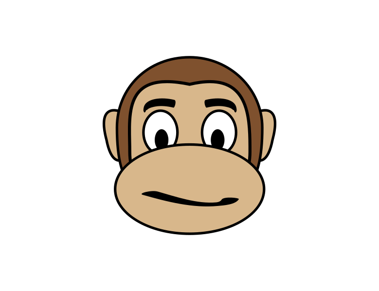 This features a cartoon-like monkey face with big eyes and a smiling mouth. It is a close up of the monkey's head, showcasing its facial features in detail. The monkey appears to be wearing glasses, adding a playful touch to the character. This illustration could be used as an emoji or simply as a fun and quirky image for various purposes.