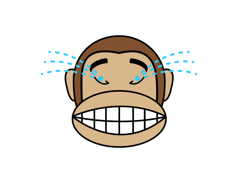 This features a cartoon monkey with its mouth wide open, giving the impression of laughing. The monkey's eyes are closed and it appears to be smiling as if it is enjoying something. The monkey has a big smile on its face, making it look happy and cheerful. The overall scene gives off a light-hearted and playful vibe.