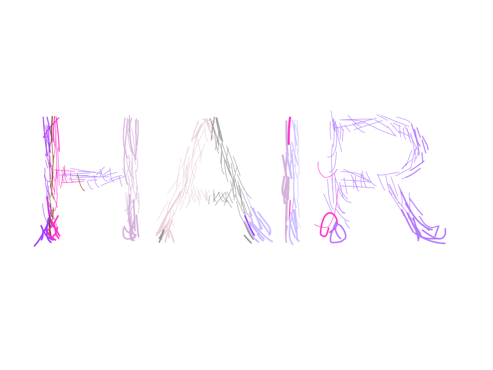 This is a close-up of the word "hair" written in pink and purple letters. The letters are slightly blurred, giving the impression that they have been drawn or painted rather than being a clear, crisp text. The color scheme of the letters creates an interesting contrast against the background, which appears to be a light shade of brown. Overall, the image captures the essence of the word "hair" in a visually appealing manner.