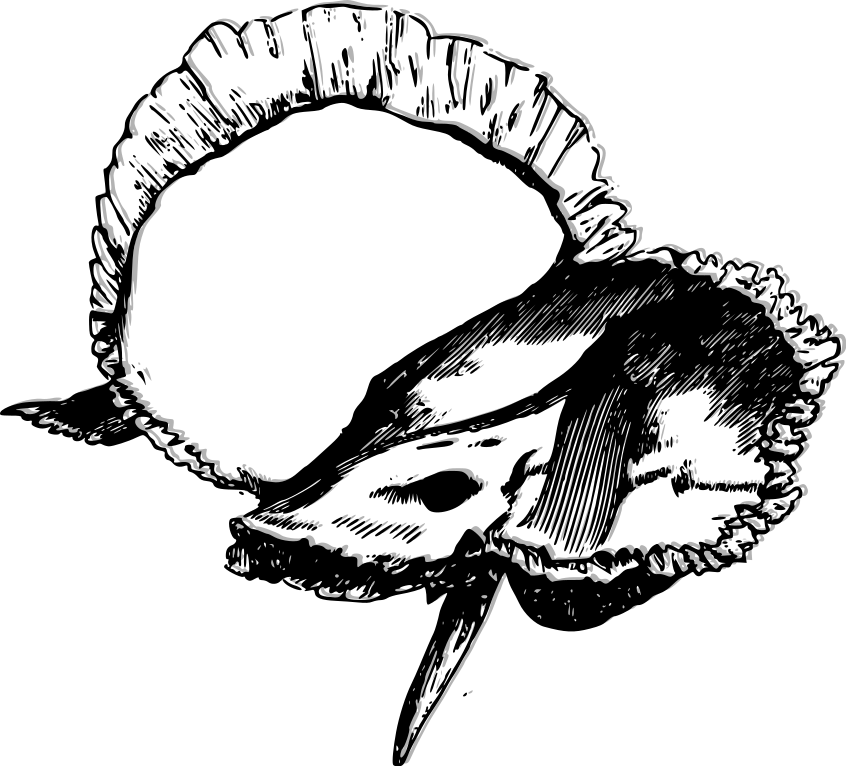 This features a black and white drawing of an animal head, possibly a bird or a fish. The head is depicted with its beak open, giving the impression that it's speaking. The head appears to be made up of bones, which adds to the artistic nature of the drawing. The overall composition of the image creates a sense of depth and intrigue, as the viewer can appreciate the details of the animal's skull and facial features.