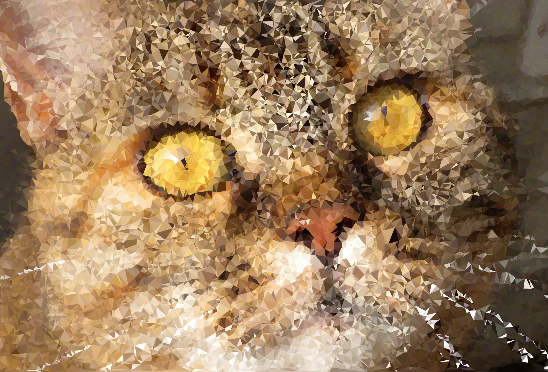This features a close-up of a cat's face, with its eyes being the main focus. The cat has yellow eyes and is looking directly at the camera. Its whiskers are also visible in the picture, adding to the detailed view of the feline. The cat appears to be sitting down, possibly on a table or other surface, as it stares intently into the lens.