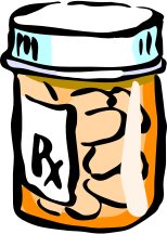This features a cartoon-like drawing of a jar filled with pills. The jar is labeled with the word "Rx" and has a large "R" on it, indicating that it contains medication. Inside the jar, there are several pills visible in various positions, including some at the top, middle, and bottom of the jar. The overall scene gives off a playful and whimsical vibe, as if the pills were characters or objects in a cartoon world.