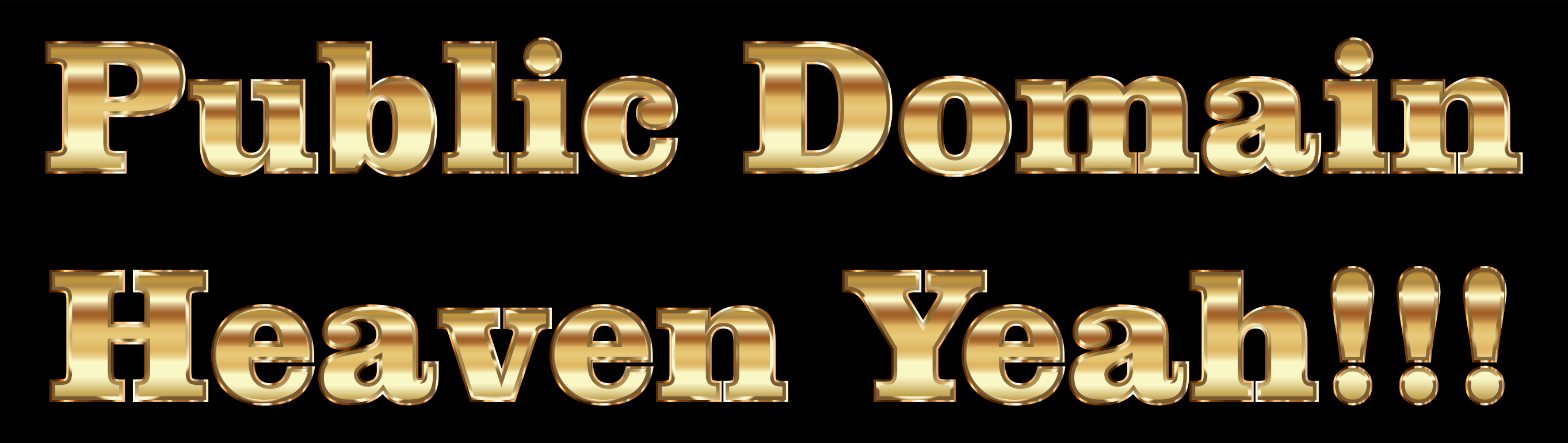 This is a large sign that reads "Public Domain Heaven Yeah!!" in bold letters. The sign appears to be made of gold and black materials, giving it an eye-catching appearance. It seems to be promoting or advertising something related to the public domain, possibly a website or service. The sign's size and design make it suitable for outdoor use, drawing attention from passersby and conveying its message effectively.