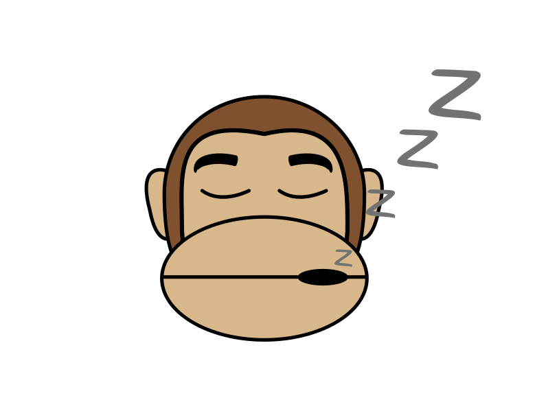 This features a cartoon monkey with its eyes closed, seemingly sleeping. It has a brown color and is wearing a headset, giving it the appearance of being asleep while talking on the phone. The monkey's mouth is open, adding to the comical nature of the scene. This whimsical illustration captures the idea of a monkey engaging in human-like activities, such as using a cellphone or having a conversation.