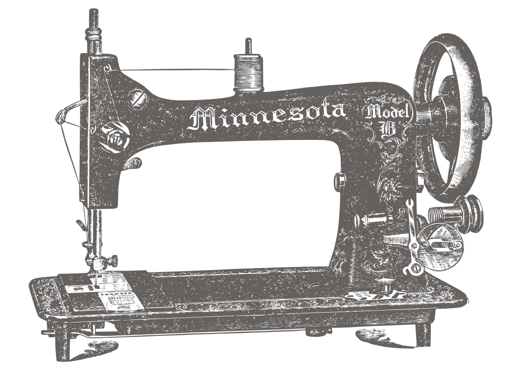 This features a vintage sewing machine with the word "Minnesota" written on it. It is an old-fashioned model, and its design gives it a classic appearance. The sewing machine has a large wheel in front of it, which is likely used for winding thread or other purposes related to sewing. The overall look of the machine suggests that it was manufactured by Minnesota Model Sewing Machine Company.