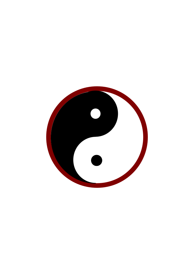 This features a circle with a yin-yang symbol in the center. The yin-yang symbol is a traditional Chinese design that represents balance and harmony, often used to represent the concept of opposing forces coexisting in a single entity. The circle itself has a red outline, which further emphasizes the contrast between the black and white colors of the yin-yang symbol. This image could be used as a decorative element or an artistic representation of the principles of balance and harmony.