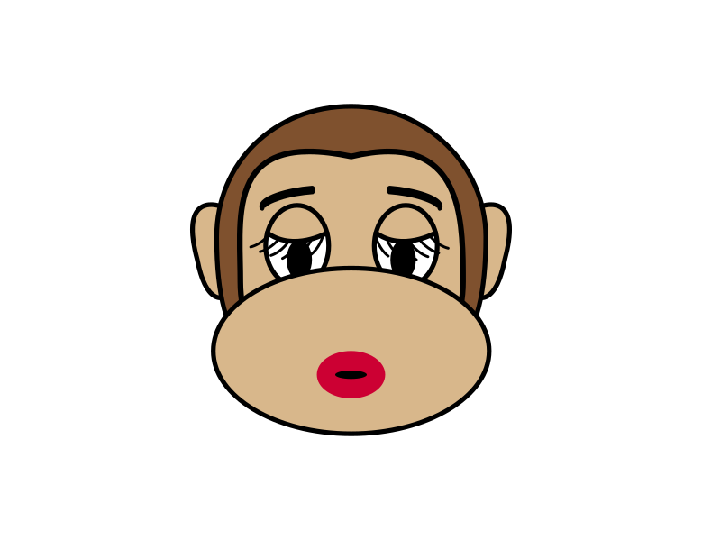 This features a cartoon monkey with red lips and mascara on its eyelashes. It appears to be wearing makeup, giving it an animated and playful appearance. The monkey's eyes are closed, adding to the whimsical nature of the scene. The overall effect is that of a fun and lighthearted illustration, likely intended for entertainment or as part of a children's storybook.
