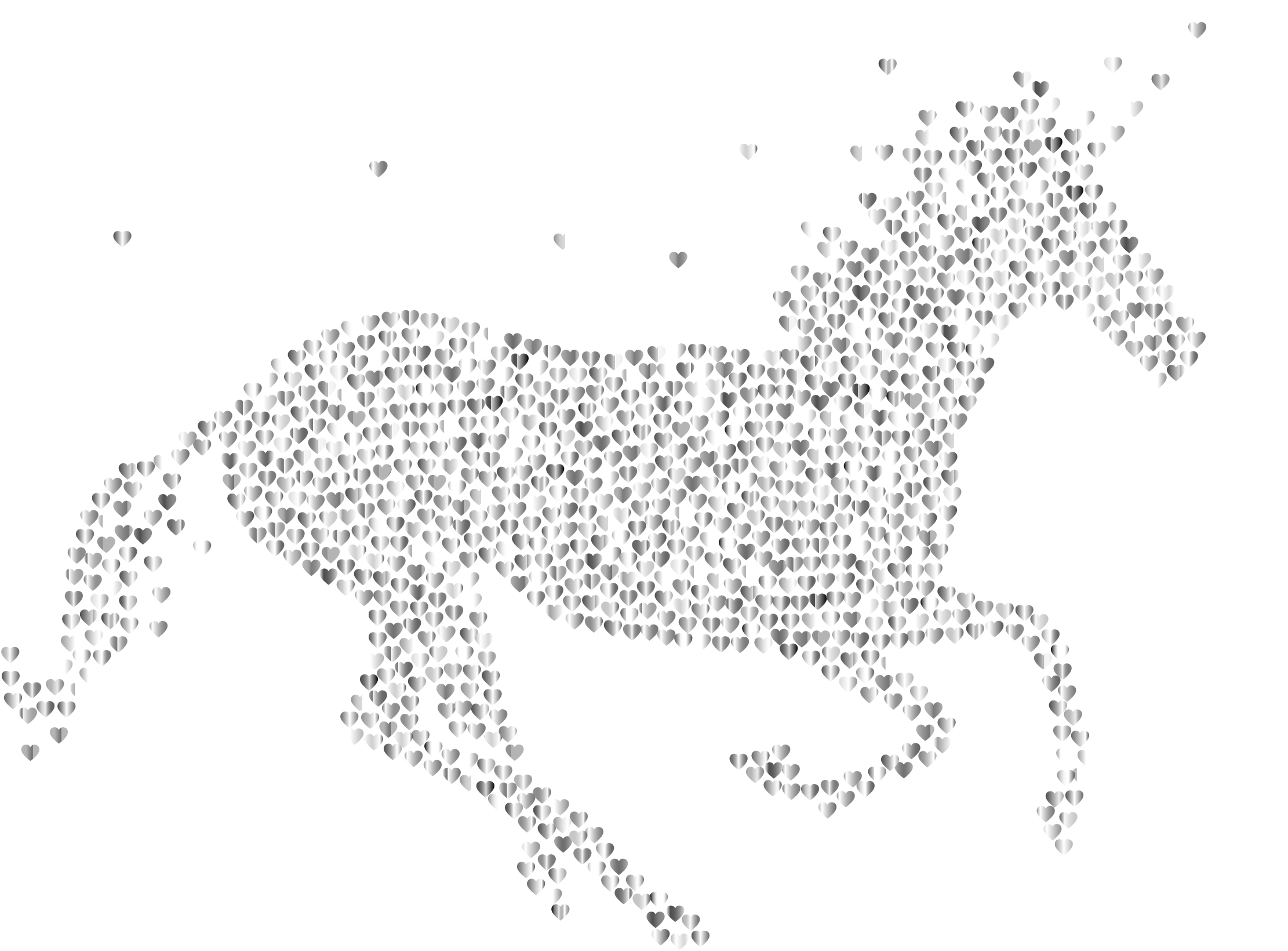 This features a horse with its head down, surrounded by a large number of hearts. These hearts are scattered all over the scene, covering the horse and filling the background. The hearts vary in size and position, creating an interesting visual effect that draws attention to the horse's presence. This unique composition creates a sense of depth and adds a playful touch to the image.