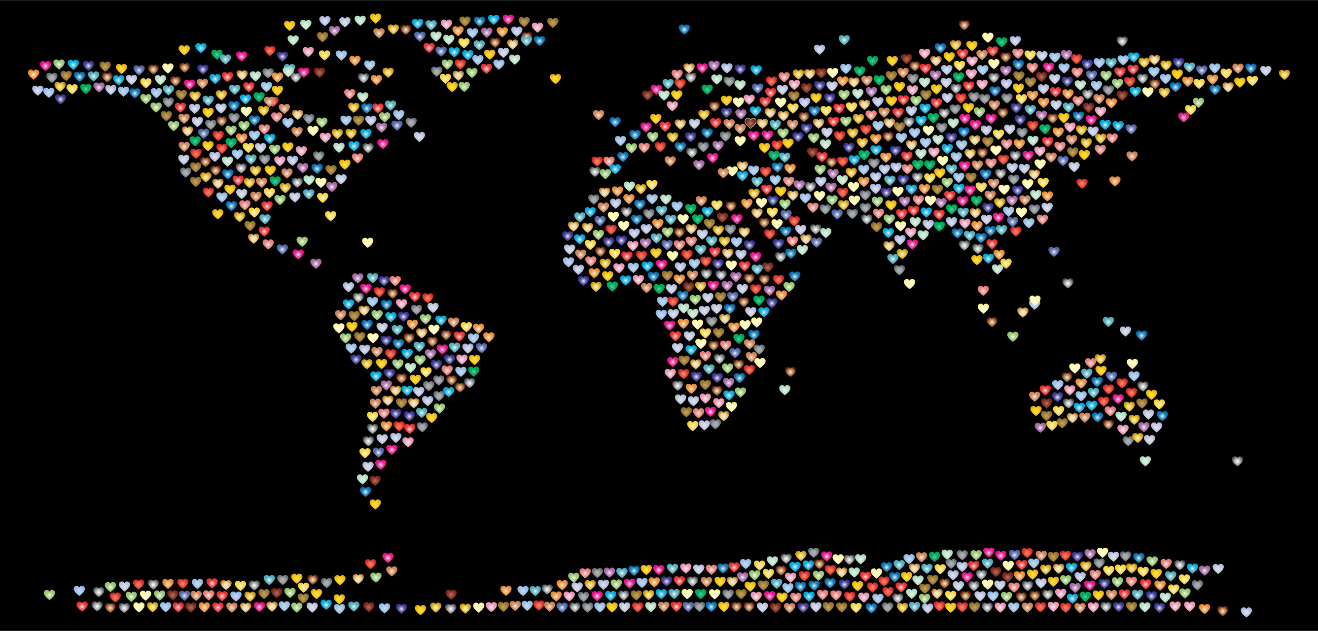 This is a completely free image Prismatic Hearts World Map that you can download, post, and use for any purpose.