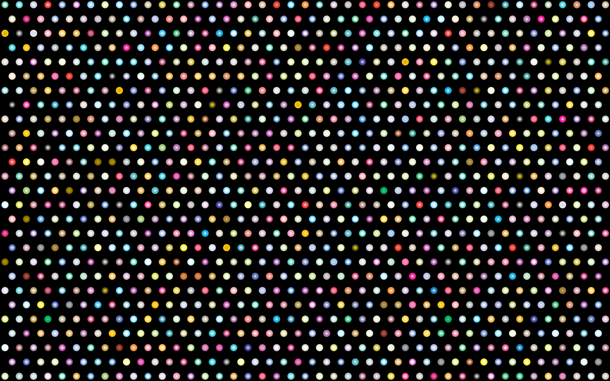 This features a large, colorful pattern of dots that are arranged in various shapes and sizes. These dots create an intricate and visually appealing design, covering the entire background of the picture. The colors used for these dots include shades of pink, yellow, green, blue, and orange, creating a vibrant and lively atmosphere. This pattern could be found on various surfaces such as wallpaper or fabric, adding a touch of creativity and style to any space it adorns.