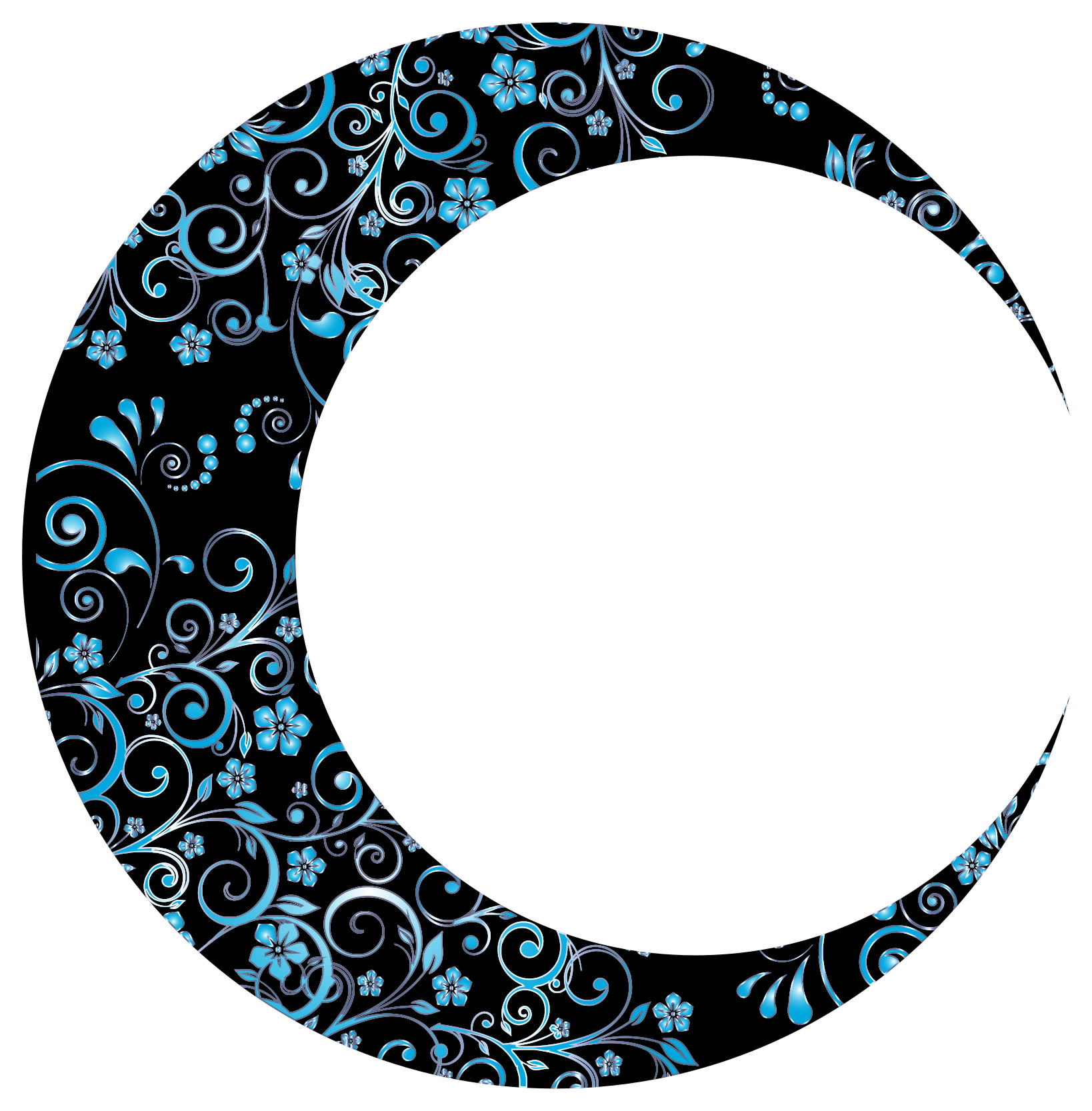 This features a large, blue and black circular design with a crescent moon shape in the center. The moon is surrounded by an intricate pattern of swirls and flowers, creating a visually appealing and artistic piece. The overall composition of the image gives off a sense of depth and dimension, making it stand out as a unique and eye-catching decoration or design element.