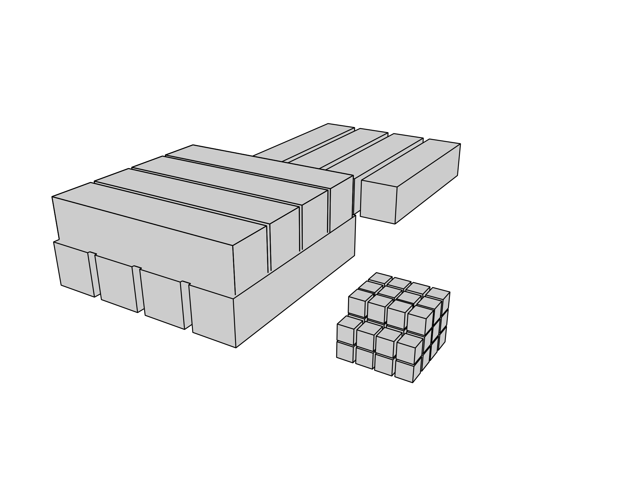 This features a large stack of grey blocks, possibly made of concrete or bricks. These blocks are arranged in a pile, creating an impressive display. In addition to the main stack, there is also a smaller pile of similar blocks placed nearby. This arrangement suggests that these blocks may be used for construction purposes or as decorative elements in a space. The overall scene gives off a sense of organization and purposefulness.