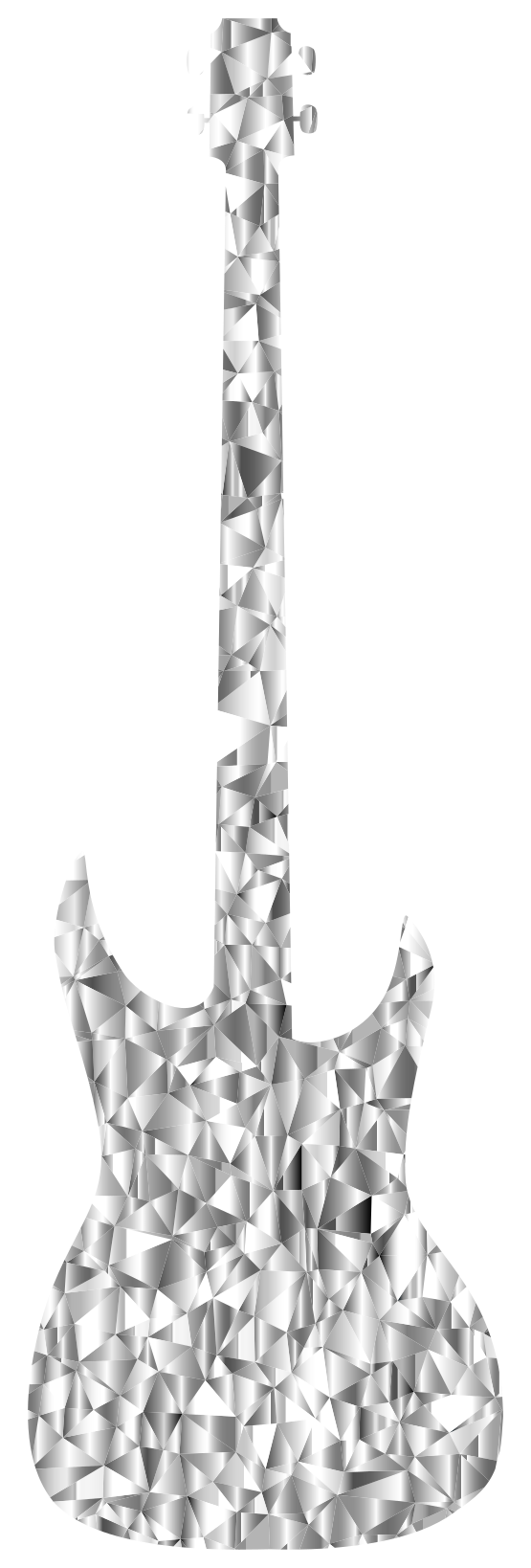 This features a guitar that is made out of little black and white gemstones. It has an interesting design, with the neck of the guitar being made up of various shapes and sizes of gemstones. The guitar's body is also adorned with these gemstones, creating a unique and eye-catching appearance. The overall effect is that of a three-dimensional image of a guitar, giving it an artistic and intriguing look.
