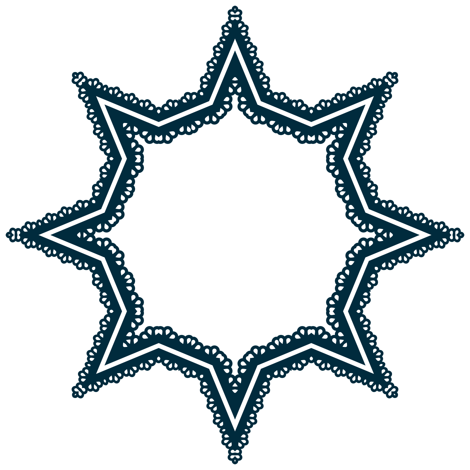 This features a large, intricate lace design that resembles a star. The star is composed of multiple smaller stars arranged in a circular pattern. Each small star has a unique shape and size, creating an interesting visual effect. The overall composition of the lace design gives it a complex and detailed appearance, making it an attractive focal point for any setting.
