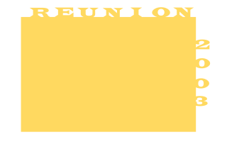 This is a square with a yellow background, featuring the word "reunion" written in white. The word is placed on top of the yellow square, creating an eye-catching design. The overall appearance suggests that this could be a poster or advertisement for a reunion event.