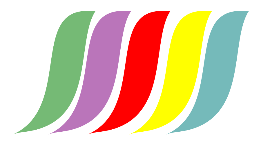 This features a colorful abstract design, consisting of various shapes and colors. There are five distinct sections in the design, each with its own unique hue and pattern. These sections include a yellow section on the left side, a red section in the middle, a blue section on the right side, a green section at the top, and a purple section at the bottom. The combination of these colors creates an eye-catching and vibrant visual effect that draws attention to the design.