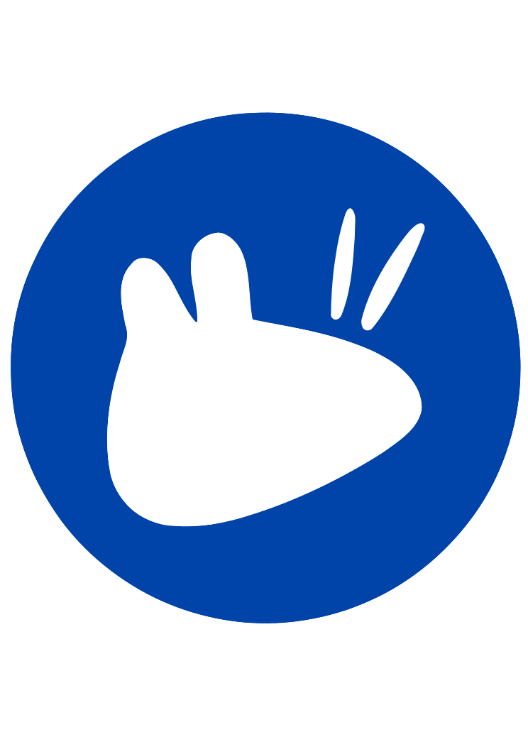 This features a blue and white symbol that resembles a rabbit. It is placed in the center of a blue circle, which serves as the background for the symbol. The rabbit's ears are pointed upwards, giving it an alert appearance. This unique design could be associated with a specific brand or product, but without further context, it is difficult to determine its exact purpose.