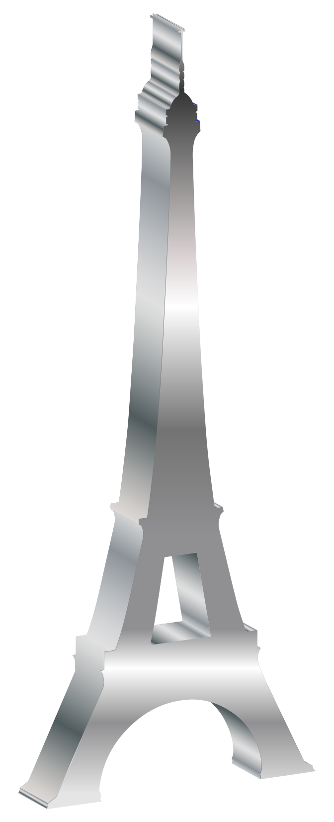 This features a 3D gray Eiffel Tower, which has a glossy effect. It is made out of metal and appears to be a close-up view of the tower. The tower stands tall in the background, creating an impressive visual display. This artistic representation of the famous landmark showcases its architectural details and adds a unique touch to the image.