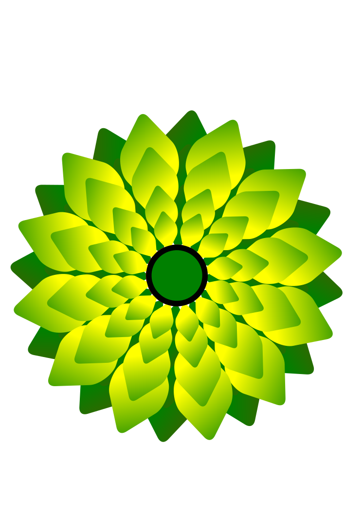 This features a large, vibrant green flower with an intricate design. This flower is made up of repeating shapes in varying shades of green, creating a visually appealing and unique pattern. The flower's center has a black circle, which contrasts beautifully against the lime green background. The overall effect is that of a captivating and eye-catching artwork or design element.