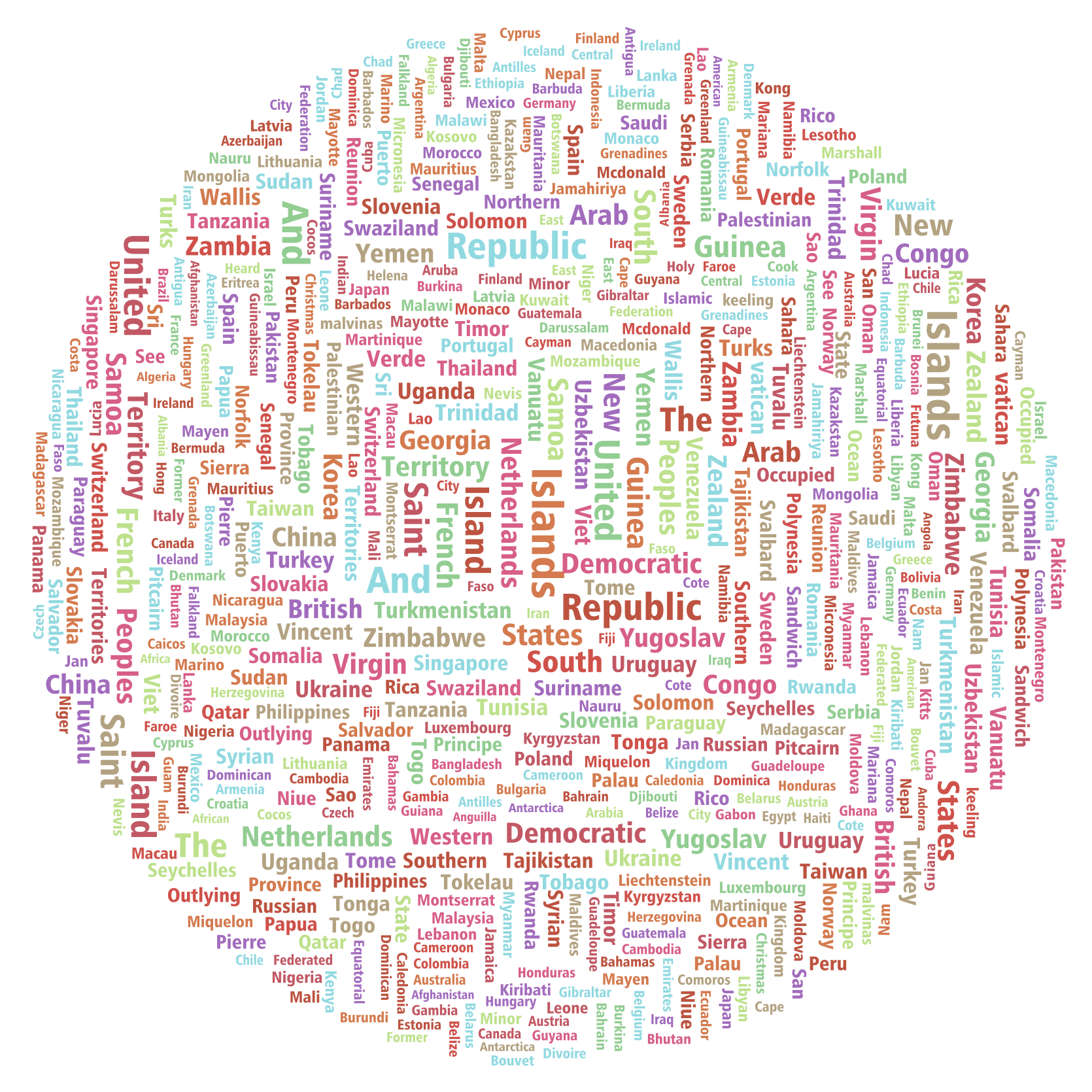 Tags: border, chromatic, colorful, country, geography, nation, political, politics, prismatic, rainbow, state, tagcloud, tag cloud, tags, text, type, typography, weighted list, word cloud, word, map countries