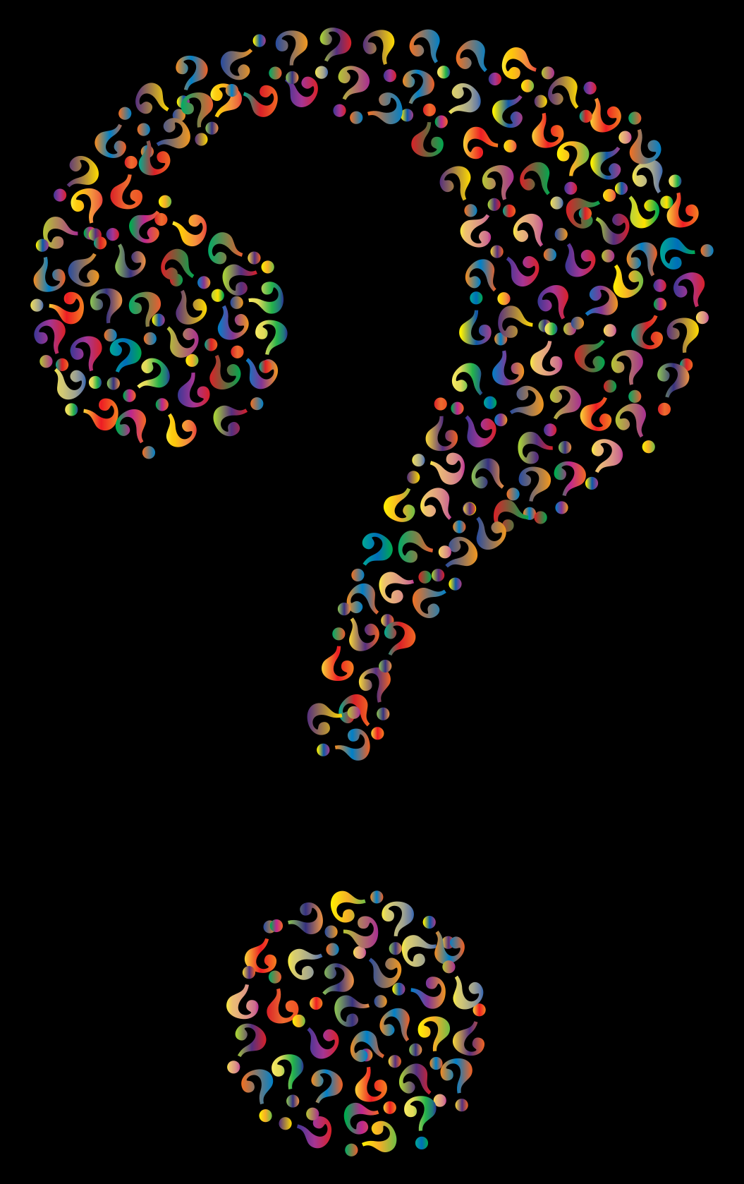 This features a large, colorful question mark made up of many smaller circles. These circles are arranged in various positions around the main question mark, creating an intricate and visually appealing pattern. The colors used for the circles include red, yellow, blue, green, and orange, adding vibrancy to the overall design. This unique artwork could be a decorative piece or a creative way of presenting information in a visually engaging manner.