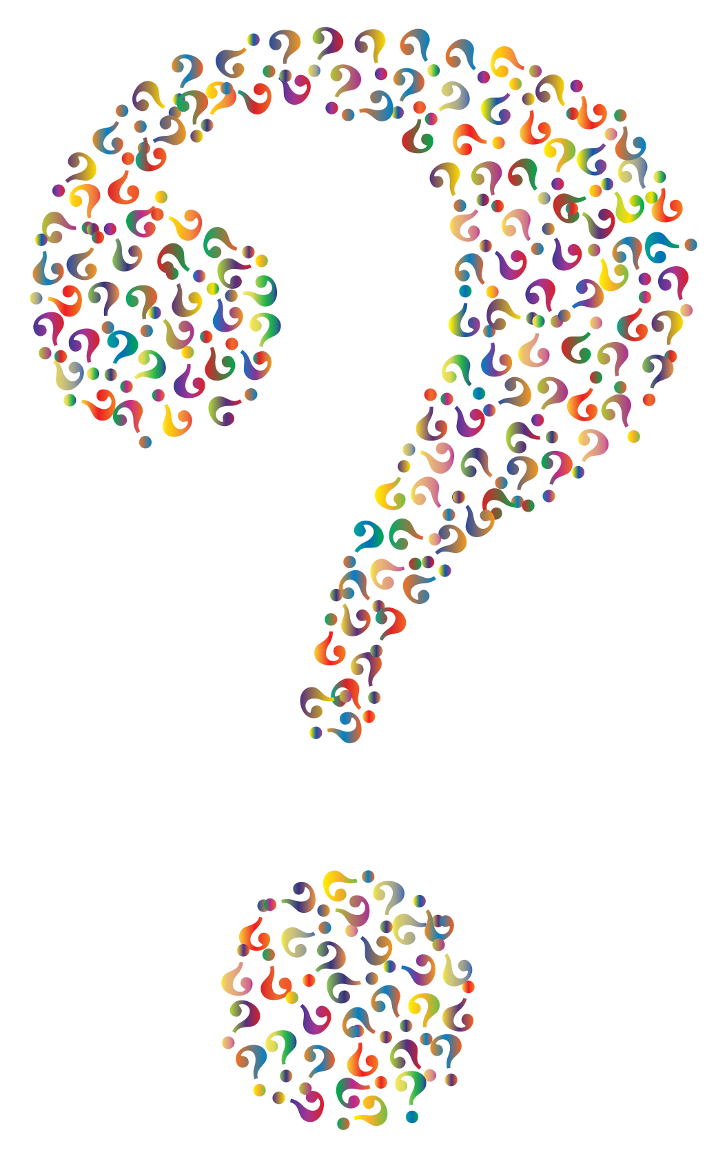 This features a large, colorful question mark made up of many smaller, colored circles. These circles are scattered all over the question mark, creating a visually appealing and vibrant design. The various colors of the circles make the question mark stand out against its background, drawing attention to its unique appearance. This creative representation of a question mark is likely used as an artistic or decorative element in different settings.
