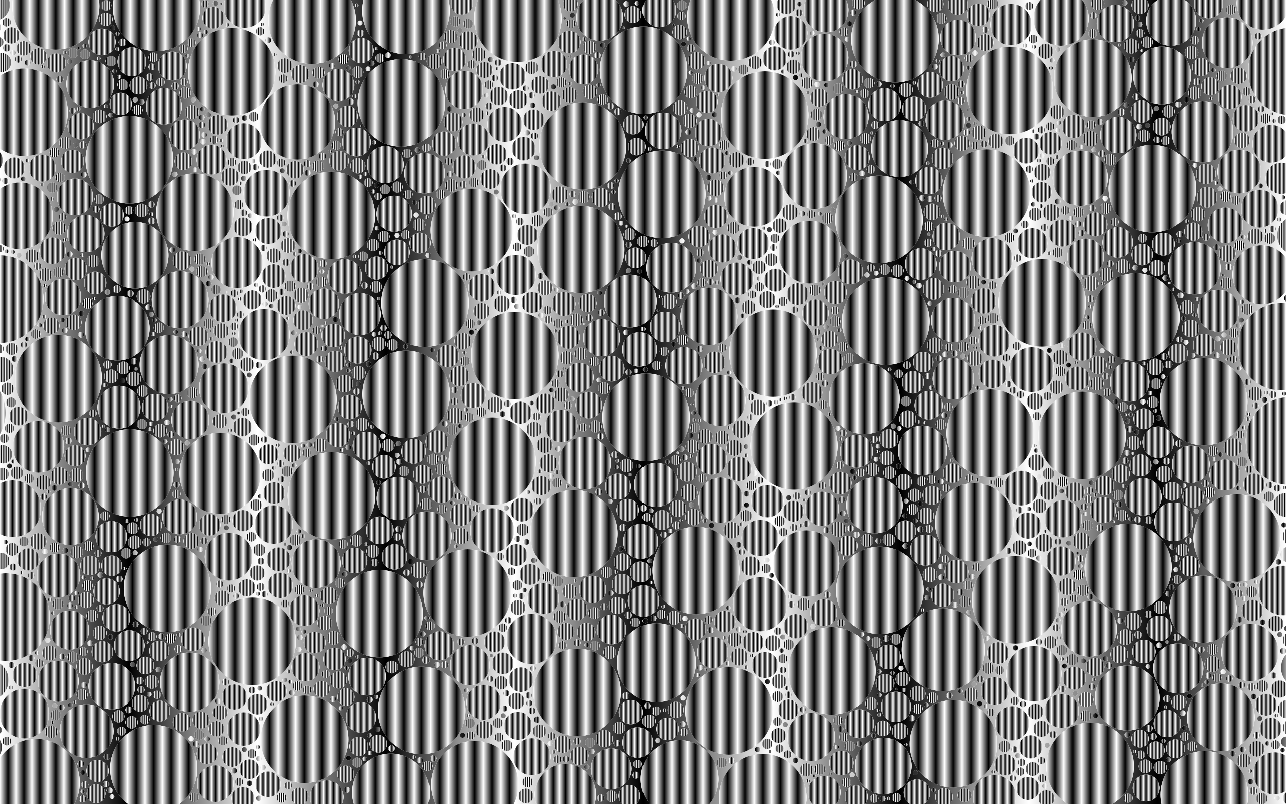 This features a pattern of black and white circles arranged in a visually appealing manner. There are numerous circles of varying sizes, creating an intricate design that covers the entire frame. The contrasting colors of the circles make it an eye-catching and unique pattern. This design could be used for various purposes such as wallpaper or fabric patterns, adding a touch of elegance and sophistication to any space.