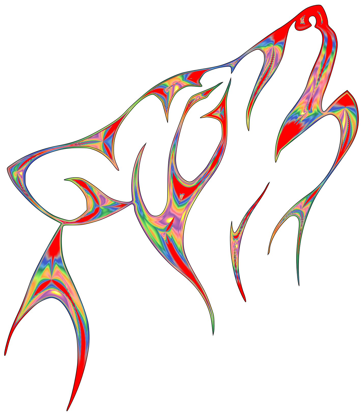 This features a colorful and abstract design of a wolf's head. The wolf appears to be howling, with its mouth open in the center of the image. The colors used are vibrant and eye-catching, making it an interesting piece of artwork. The wolf's head is surrounded by swirls and patterns that add depth and complexity to the design. Overall, this artistic representation captures the essence of a howling wolf in a visually appealing manner.